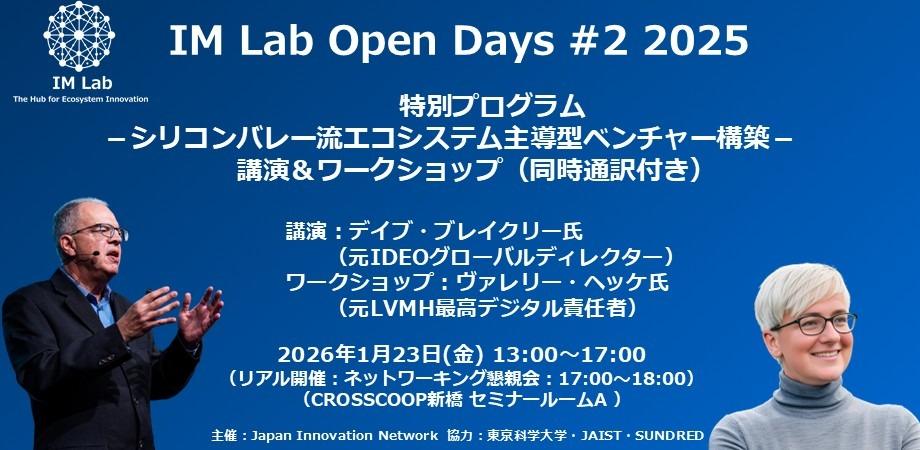Japan Innovation Networkが主催し、東京科学大学、JAIST、SUNDREDが協力する、IMLabのイベントをご案内いたします。