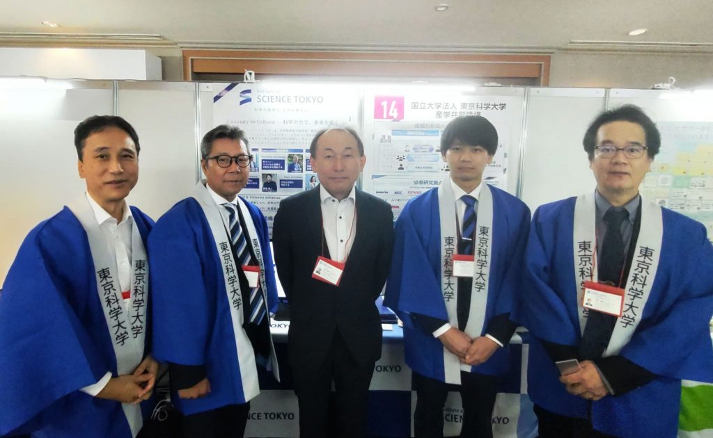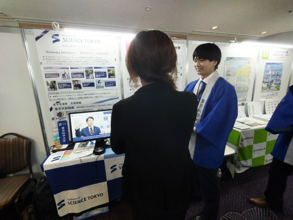 また、展示会場のステージで行われた出展者自らが出展内容をアピールするMatching pitchでは、大学名の入った法被を着て新大学名を広めるとともに、VIの紹介を行いました。