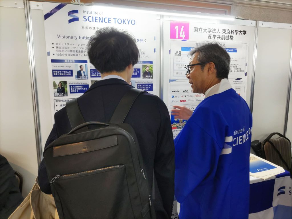 初日は講演、パネルディスカッション、学生ビジネスアイデアコンテストが開催され、2日目には、企業、大学、機関等を紹介する190のパネル展示などがあり、活発な交流とマッチングが行われました。本学は、今年で2回目の参加でしたが、およそ120名の方に立ち寄っていただき、本学の新たな研究体制Visionary Initiatives(VI)*2や、産学連携の制度、Digital Open Innovation Campus*3などに興味を持っていただきました。
